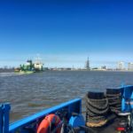 Normalerweise fahre ich ja Tunnel aber heute kam ich vom Kunden und die Fähre war gerade da. Also rauf und mal das schöne Wetter genossen, eine Wurst und einen Kaffee zu mir genommen, passt!